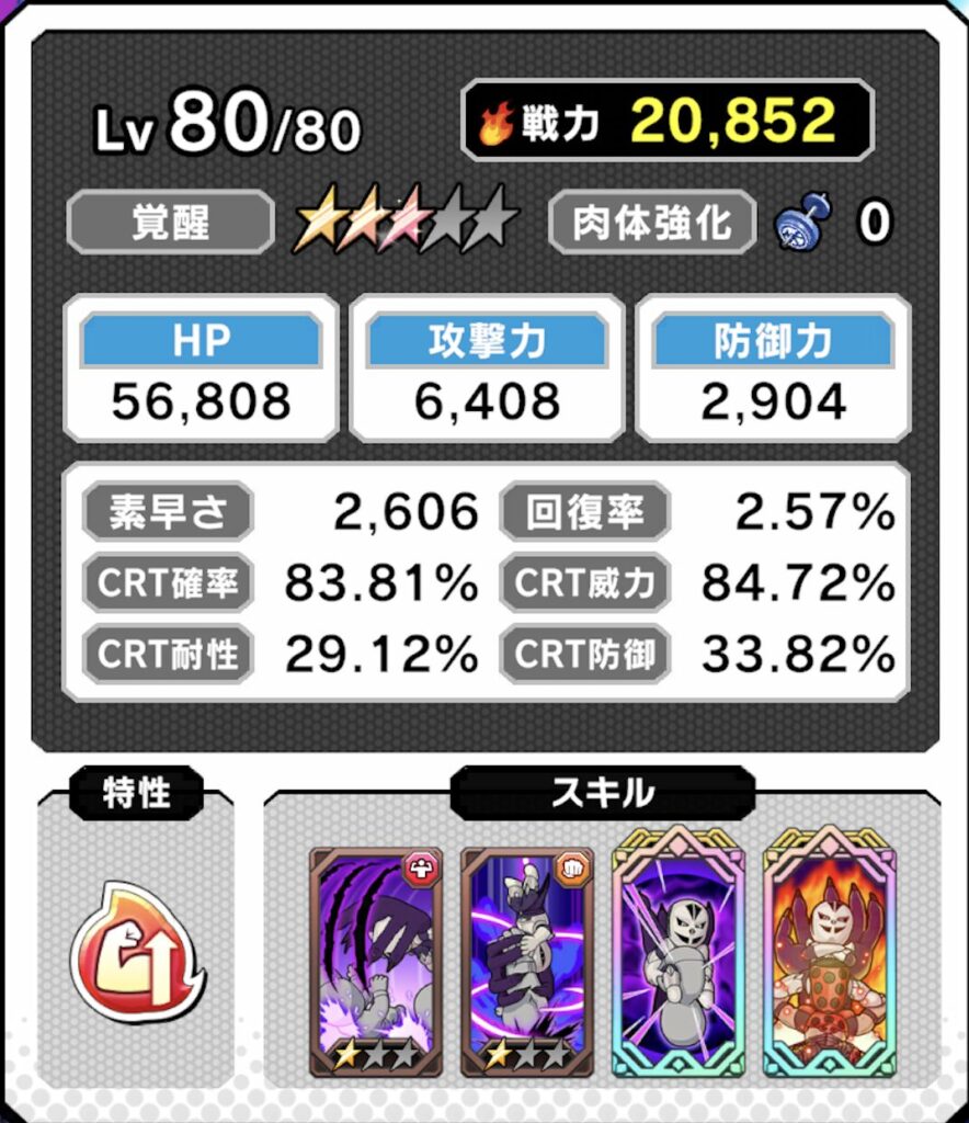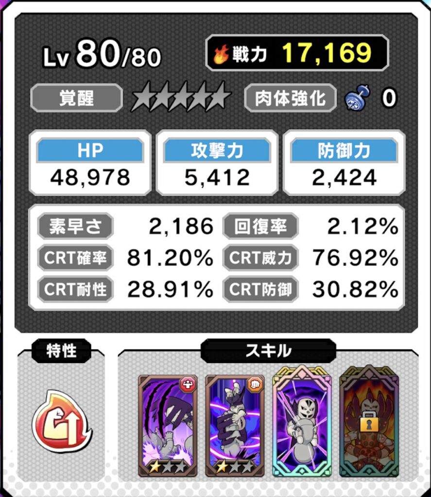 サポート超人自体にも覚醒を行うことができ、こちらも3凸&5凸でサブ特性が解放されます。