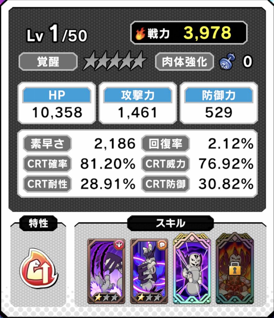 新規実装された超人はストーリーイベントで超人石が50個手に入るので、無理なく1凸は可能になる計算です。