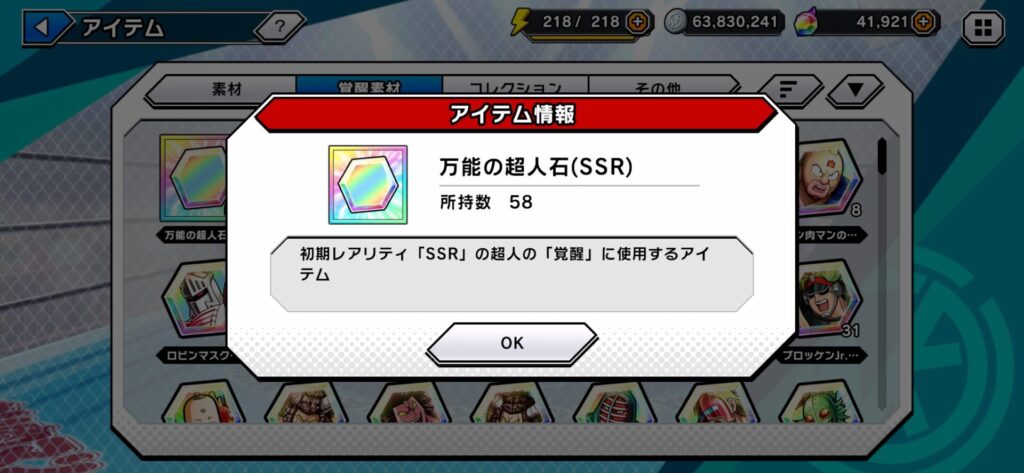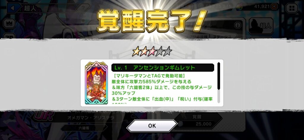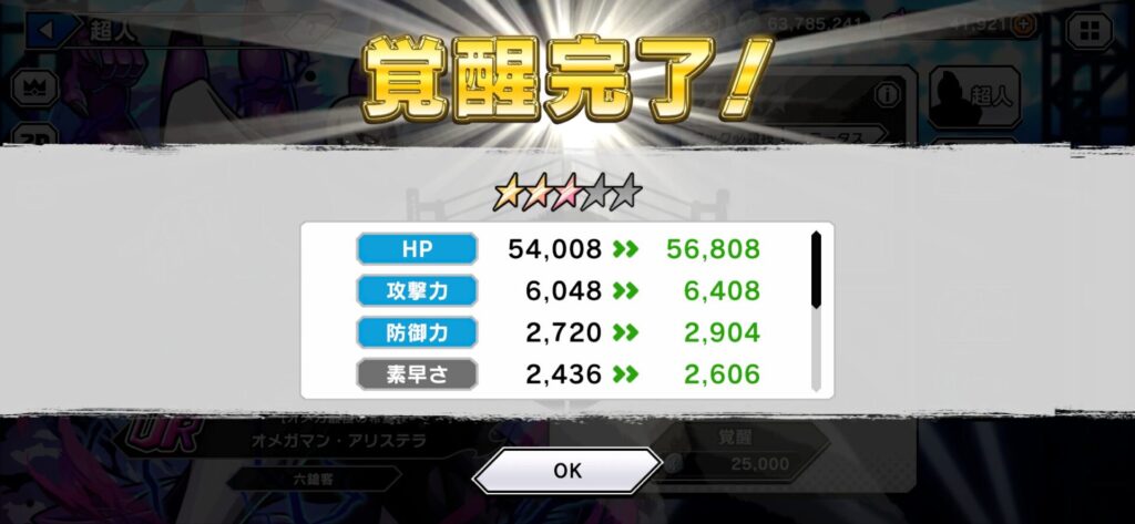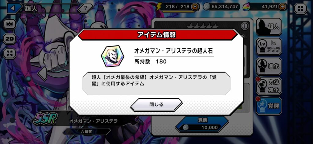 覚醒は段階ごとに必要となる超人石の数が増えていきます。