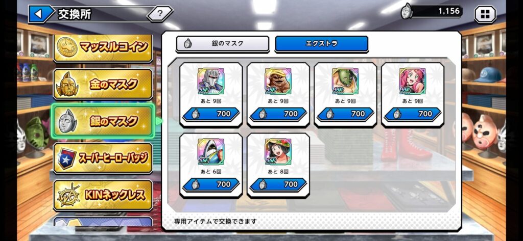 銀のマスクはサポート超人ガチャチケットと交換することができます。