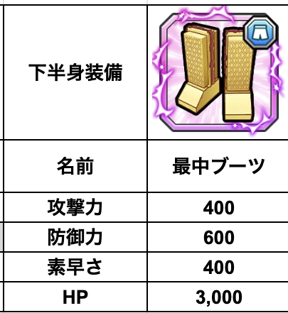 そんな方がプラスクリスタルを使うなら、直近のイベントで入手できた最中ブーツはかなりおすすめ。