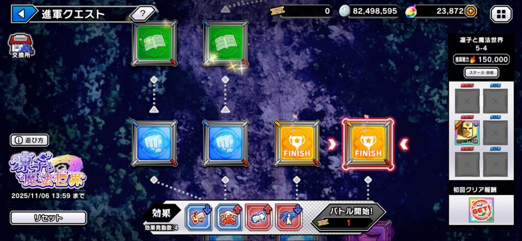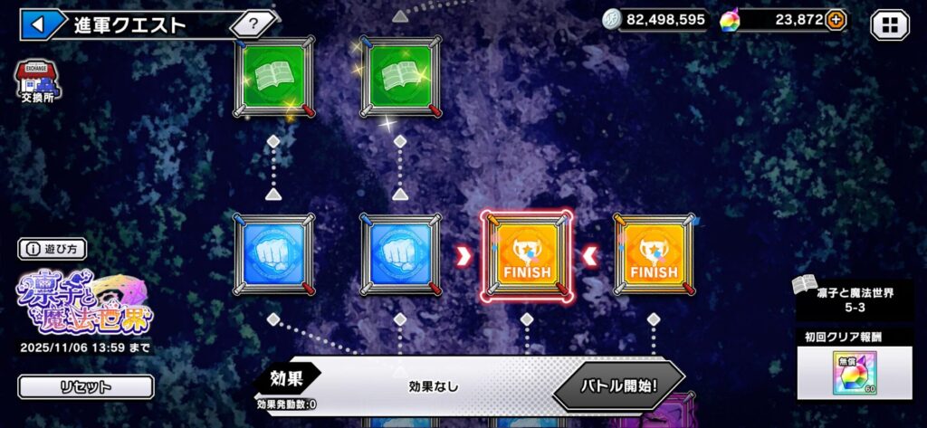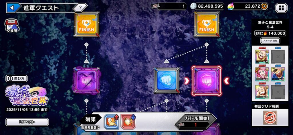 そのため、まずはバトルチケットを左ルートでしっかりと消費しつつ、バトルチケット・レアを集めてから右ルートに臨む方が時間を無駄にしないで良くなります。