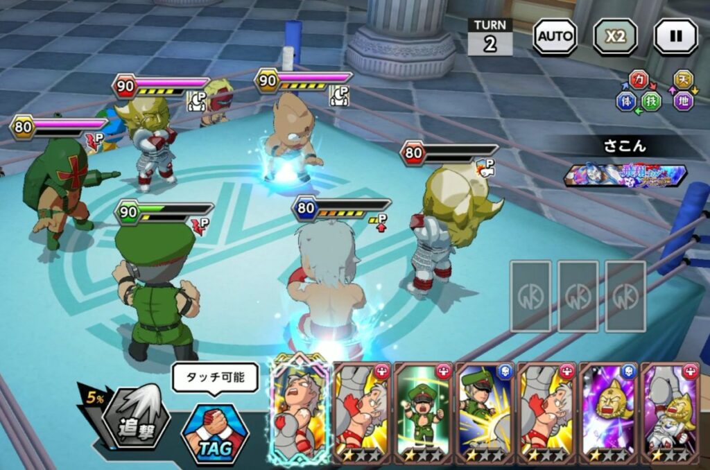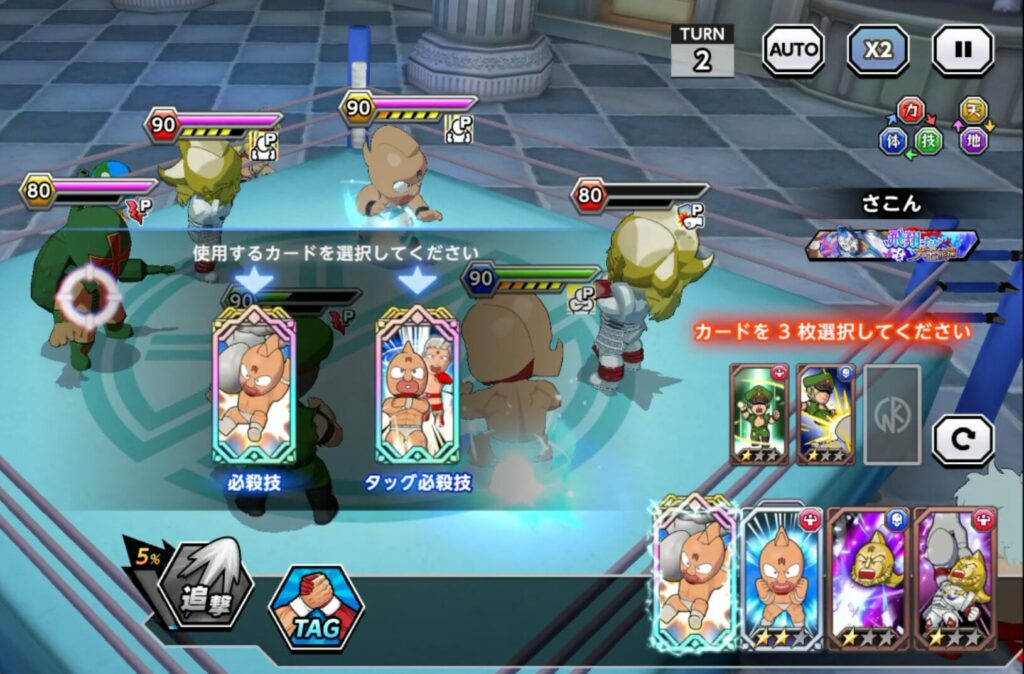 残りのメンバーとしては、まずはタッグ技で前衛を倒したあとに攻撃を畳み掛けられるような強力な全体攻撃持ち超人が欲しいところ。