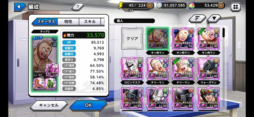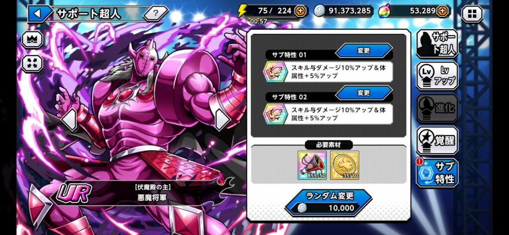それでもステータス上は攻撃力が1万いかないときたもんだ!(サポート超人のサブ特性はここには反映されない)