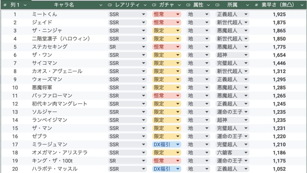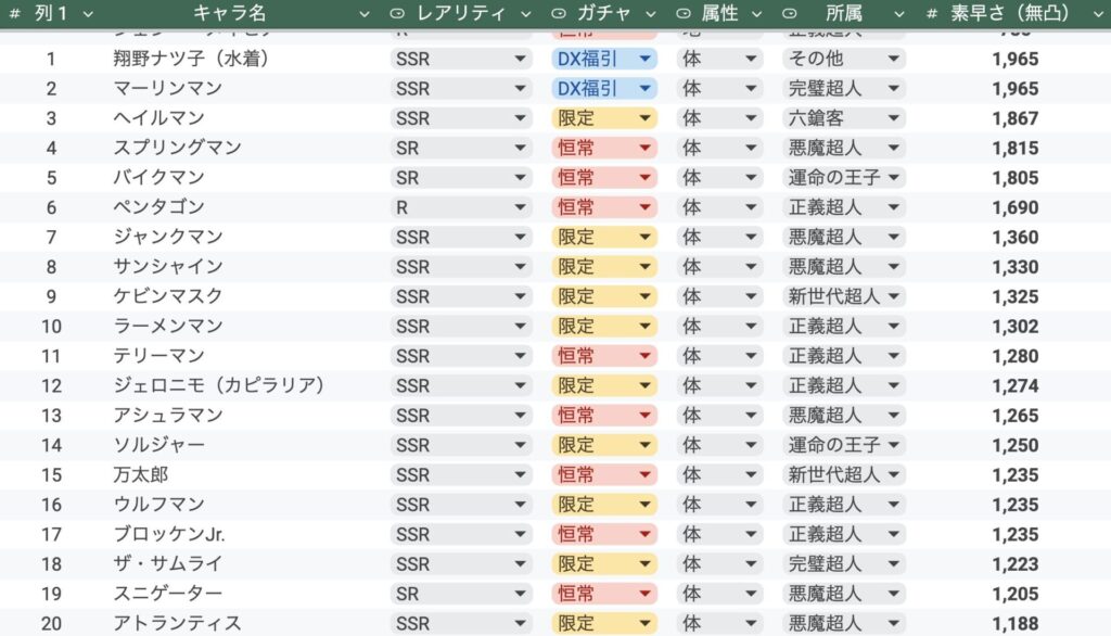 この記事では、実装済みの超人たちの初期素早さをランキングにしてみました。